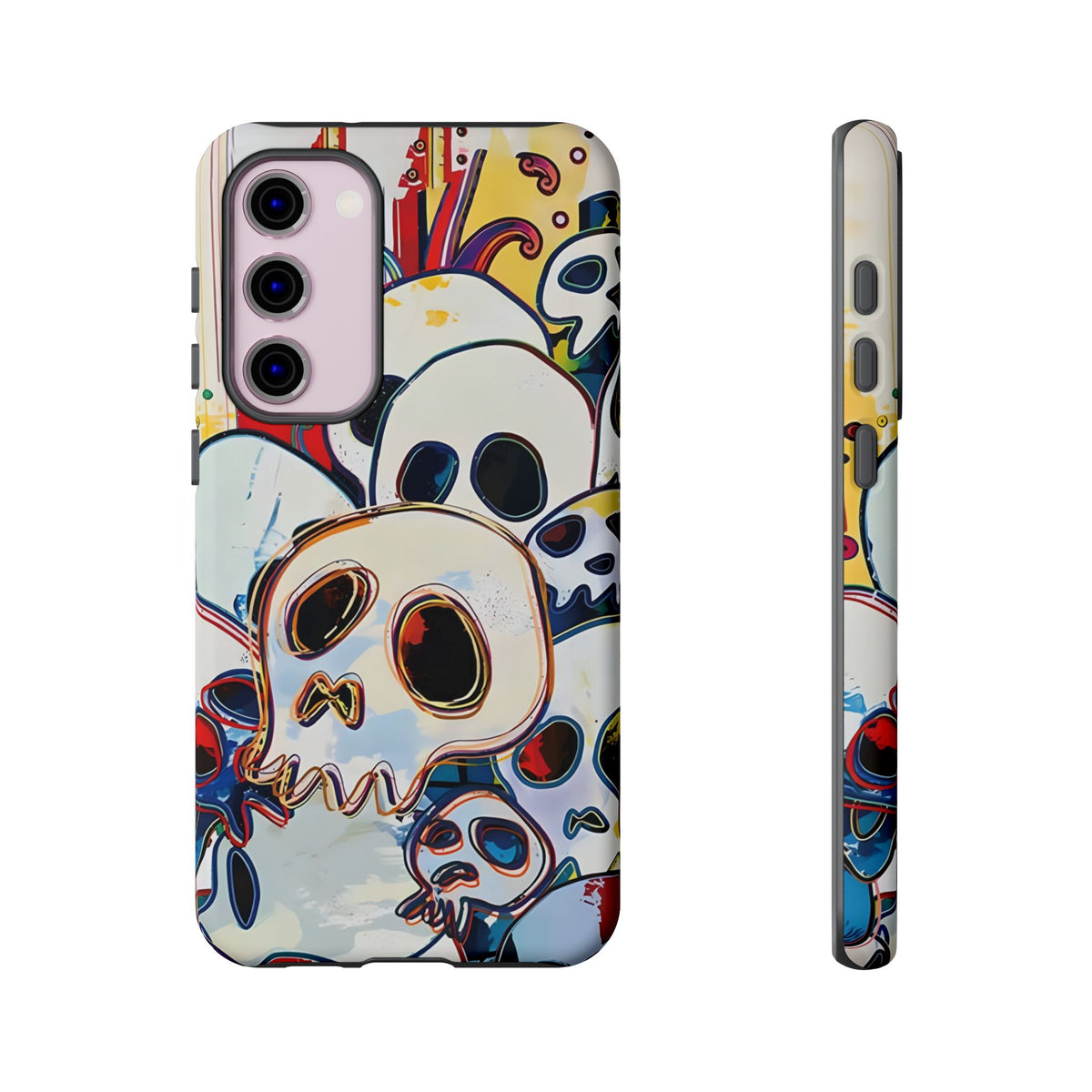 Make your Galaxy unforgettable with the Pop Art Skeletons Samsung Galaxy Tough Case. Vivid hues and quirky skeleton graphics showcase a daring pop art vibe while the tough construction guards against drops. Inspired by the modern aesthetic of a MagSafe Clear Case, it doubles as a Custom Case and a Personalized Case. Perfect for anyone who wants a protective yet artistic Custom Phone Case.